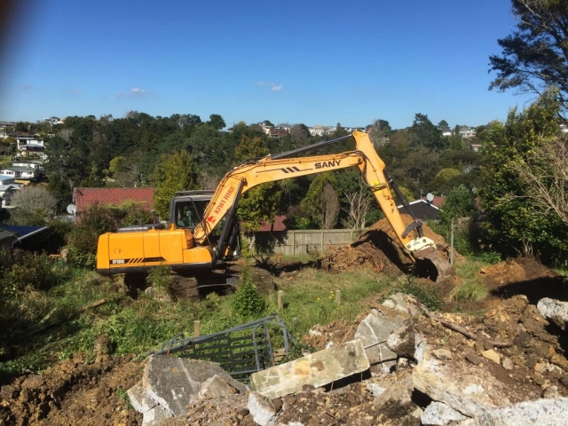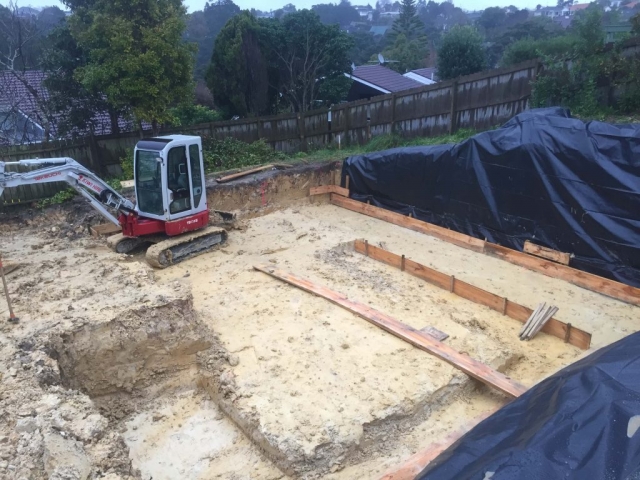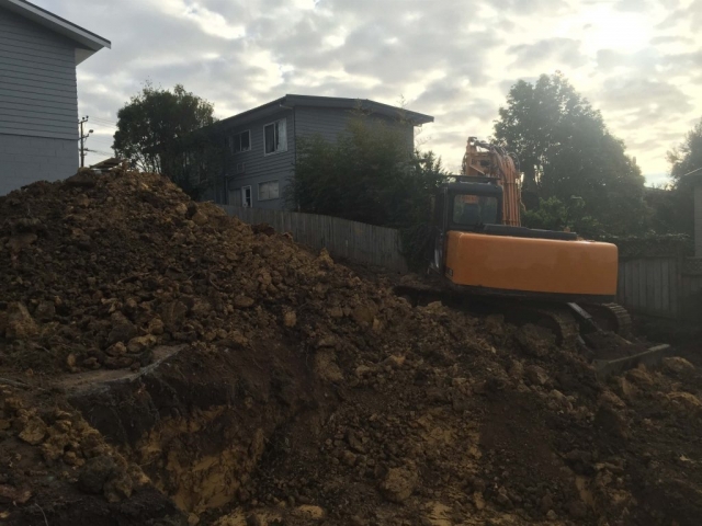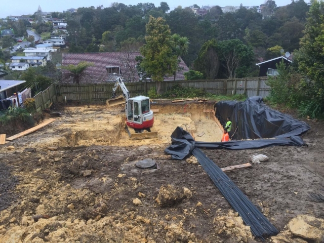 The Glenfield site was sloping and the owner occupied the house at the front of the site and had decided to subdivide the property and build on the rear of the site. Ryan carried out all of the earthworks and service reticulation for the subdivision, and built the new house. There was a large amount of problem solving required to resolve the stormwater reticulation of the site with the adjusted levels. Ryan came up with the resolution himself and committed to constructing the solution in order to complete the job and not leave anything unresolved.