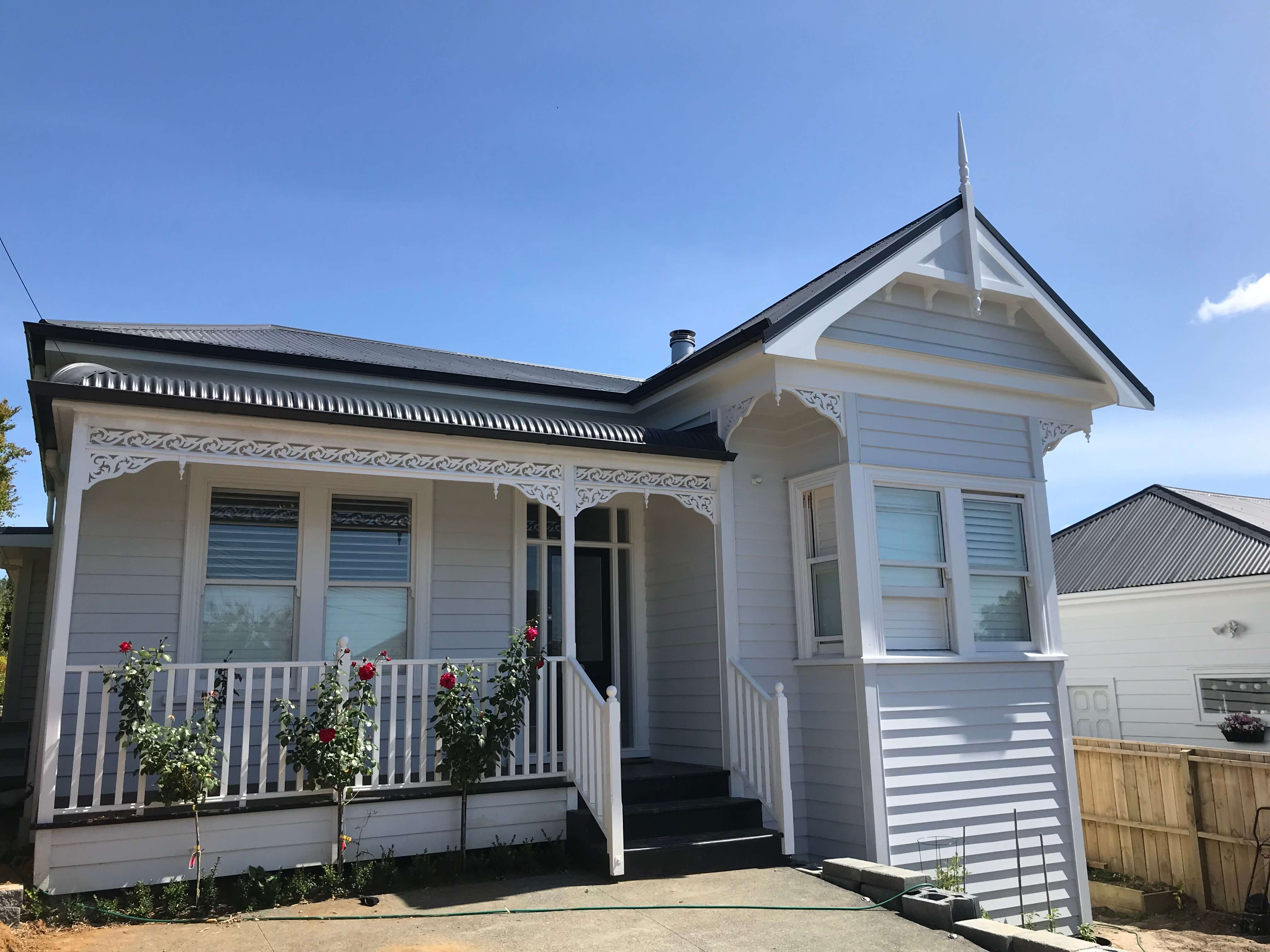 Ryan lifted the house and moved it back on the site. He excavated underneath to add another storey, and at the same time constructed an addition on the back of the house. The entire house was renovated in the original villa style. This involved sourcing specific materials and trims to match the original, right down to the front verandah surrounds that had to be delicately constructed and fitted to create the desired finish.