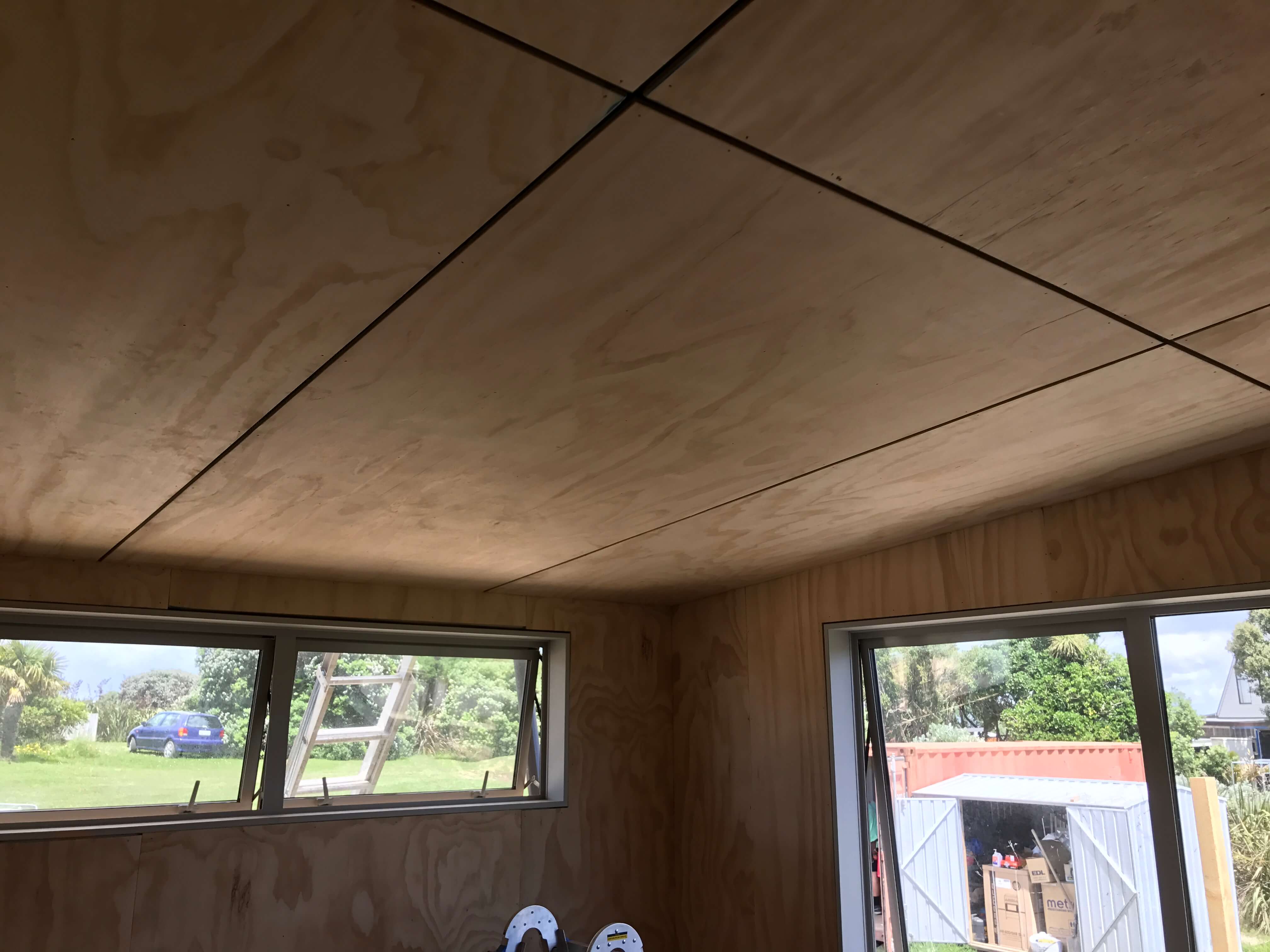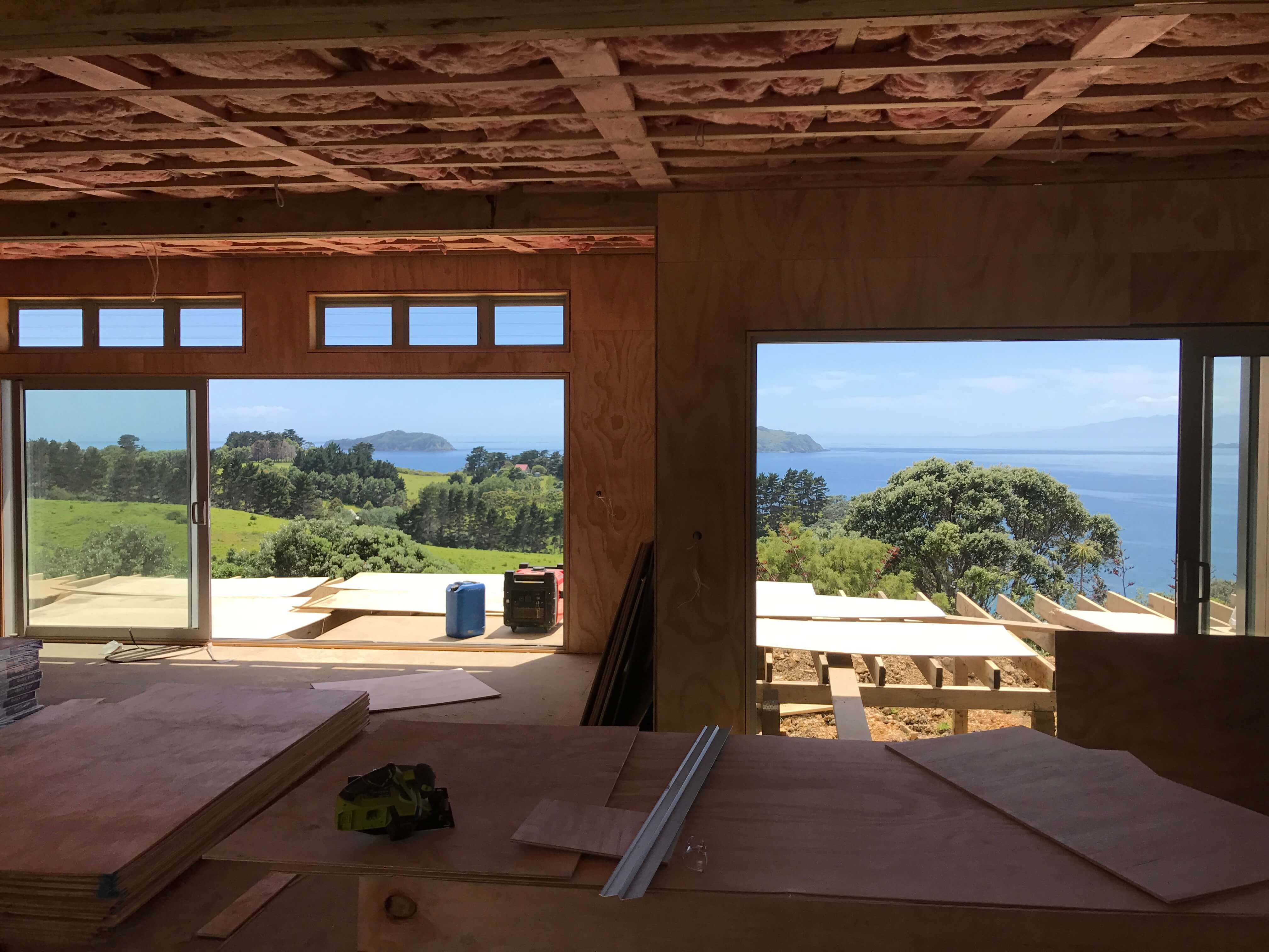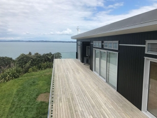 The Rakino Island Bach was completed by Ryan and his team in 2017. The Bach is open plan and lined with ply wood, had three bedrooms and two bathrooms and a deck spanning the length of the rectangular Bach.